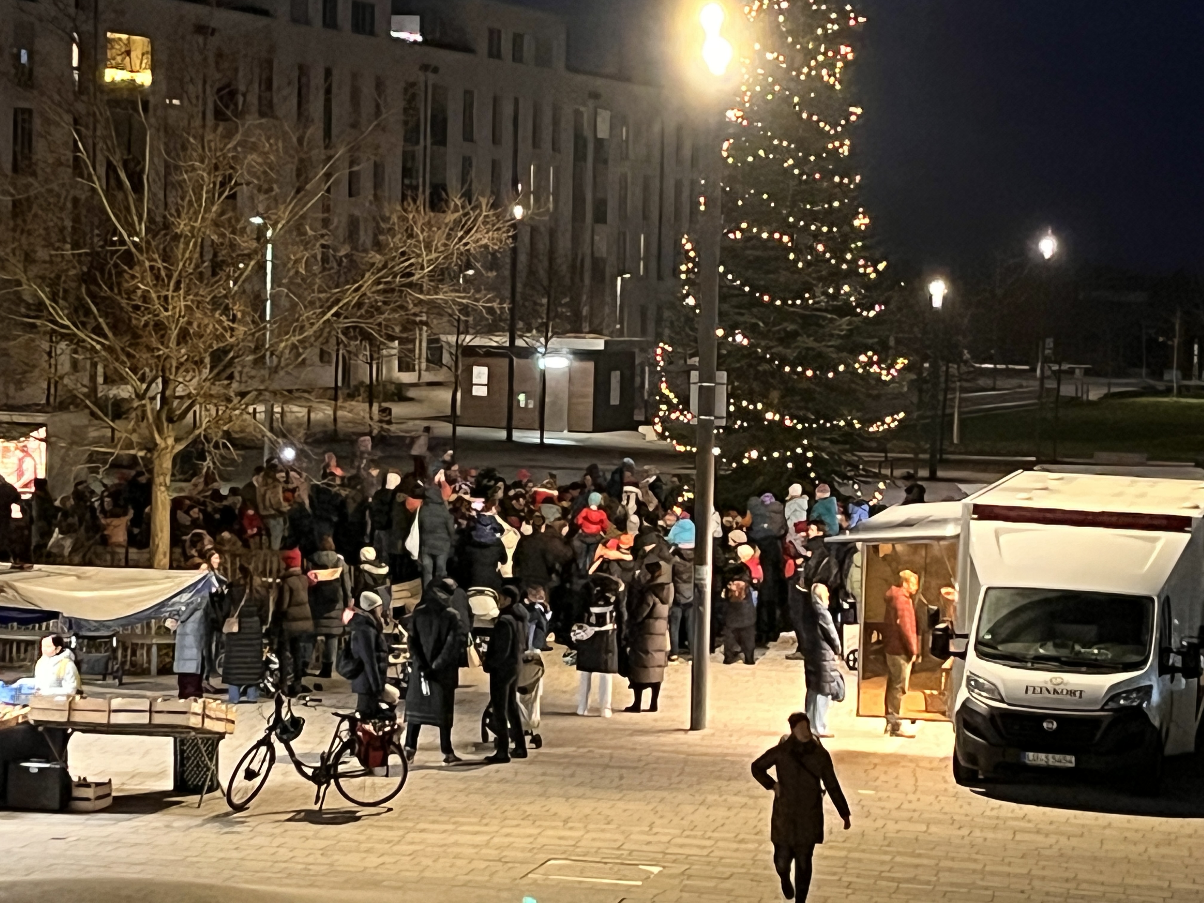 Er wurde von vielen, vielen Kindern am hell erleuchteten Weihnachtsbaum auf dem Gadamerplatz, eingerahmt