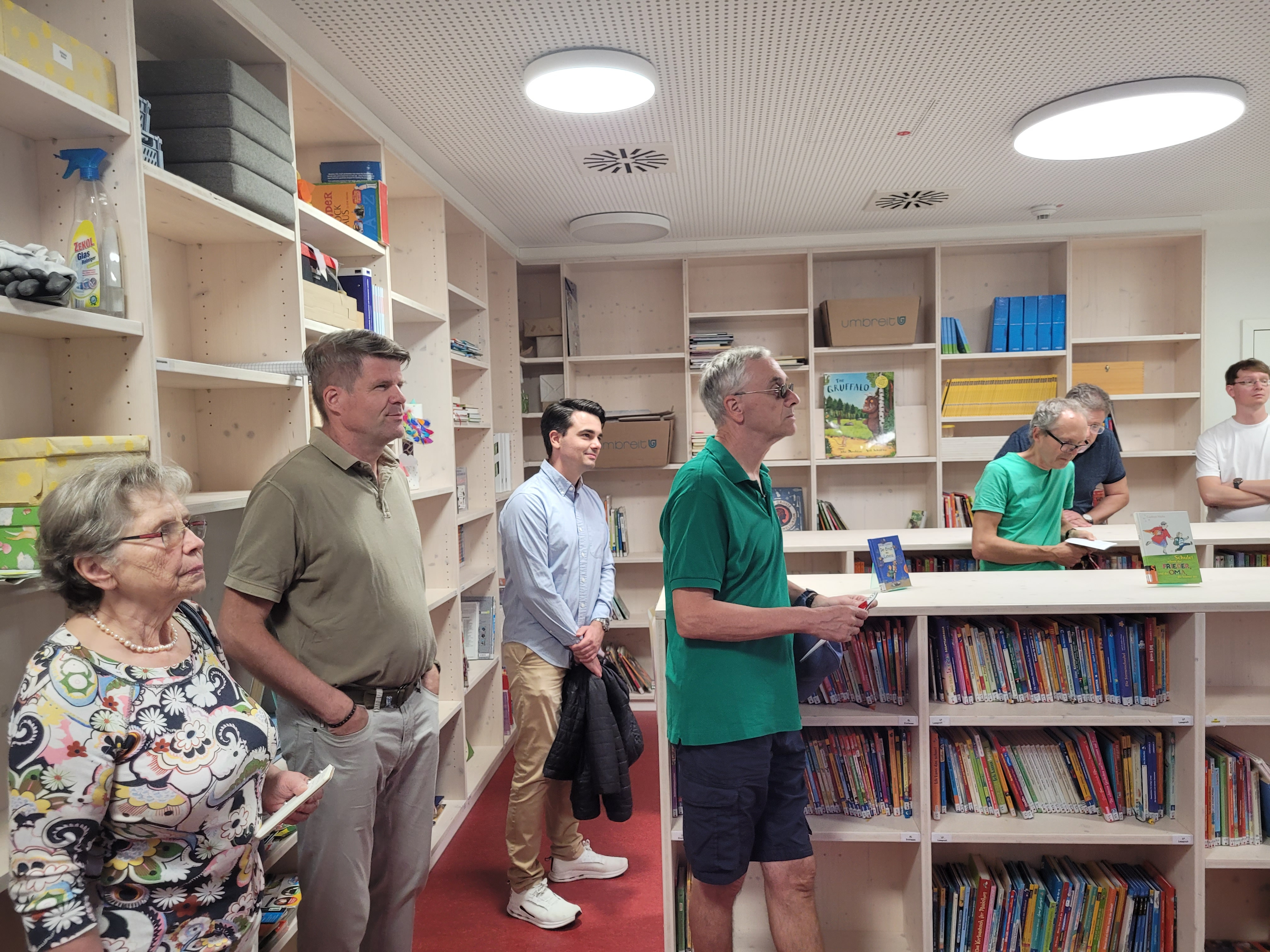 Unsere erste Station war päd-aktiv in der Ganztagesschule Bahnstadt. Seit 30 Jahren entwickelt der Verein im Raum Heidelberg Konzepte und Angebote für pädagogische Arbeit mit Kindern. Frau Bender führte uns in die Unterrichtsräume und in die Schulbibliothek. Wer Lust daran hat, Grundschulkindern vorzulesen und sie so für das Lesen zu begeistern, für den wäre die Rolle des Lesepaten genau das richtige. Wer sich ehrenamtlich in der Schulbibliothek mit 2000 Büchern austoben will – hier werden ebenfalls noch HelferInnen gesucht! Unterstützung bei Übungen und Hausaufgaben auf Grundschul-Niveau würde die Kinder ebenfalls freuen.. Eine Einweisung und Unterstützung in die jeweilige Aufgabe bietet die Schule an. Ansprechpartnerin: Frau Bauer oder Frau Bender, Kontakt: 06221/ 58410017 oder GTS-Angebote.Bahnstadt@ paed-aktiv.de.