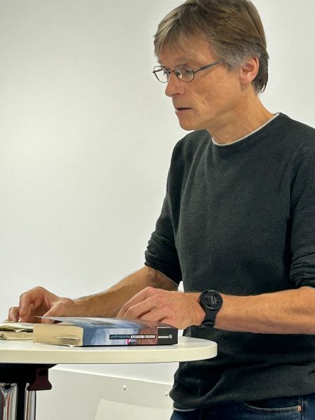 Nach einer kurzen Getränkepause mit Wein, Sekt und Softgetränken, wollten die Zuhörer/innen mehr über die Arbeit des Autors und die Figur Kollers erfahren. In einer kleinen Fragerunde konnten sie ihre Themen ansprechen und erfuhren nicht nur viel über Max Koller, sondern auch über den Autor selbst, der als Wahlheidelberger ursprünglich aus dem Saarland stammt und seit über 30 Jahren in Heidelberg wohnt.